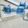 2、可对管道保温中外金属板材的弯头片进行加工,轧槽;起槽;其目的是将弯头片卷圆后将弯头片与弯头片之间的槽相互咬住,连接紧密,不易开缝。可制作管道保温外金属板板材的铁皮管(直板)、弯头、变径、三通、罐体封头(西瓜片)等配件。